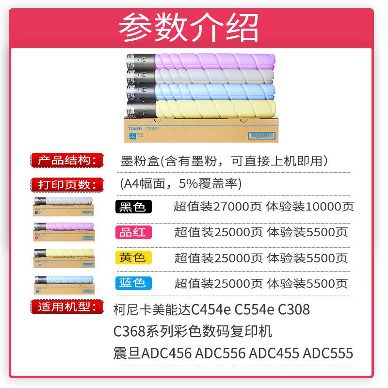 C558 C658 C554e 适用美能达TN512粉盒柯美Bizhub C368 C458 C308 C258硒鼓打印机碳粉复印机墨粉盒 C454E