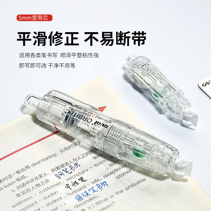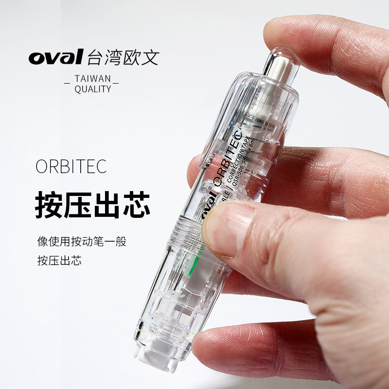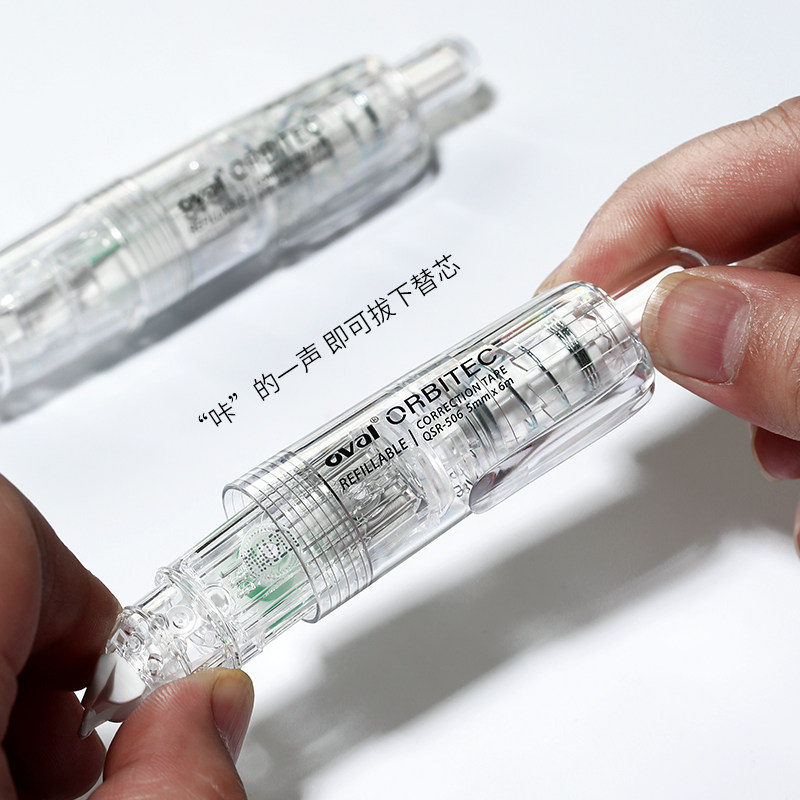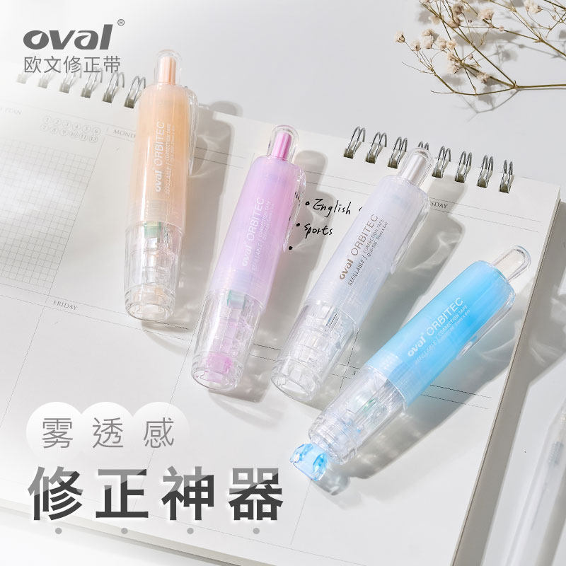ins马卡龙系列360°按动型涂改带可换替芯6m改正带 修改带限定款 oval欧文修正带QSR 506雾感透明白色笔式