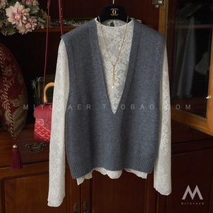外穿羊毛小坎肩 女100针织V领马甲套头背心韩版 赔钱处理新款 羊绒衫