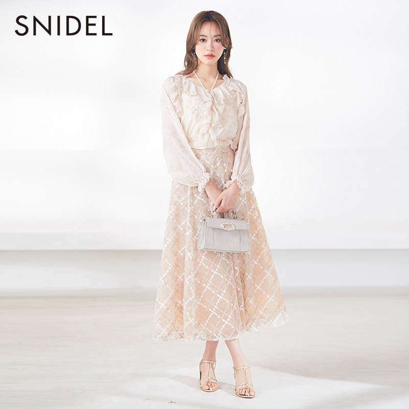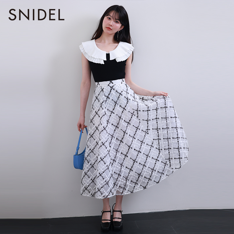 SNIDEL春夏款 甜美淑女透视格纹高腰雪纺半身裙SWFS231173