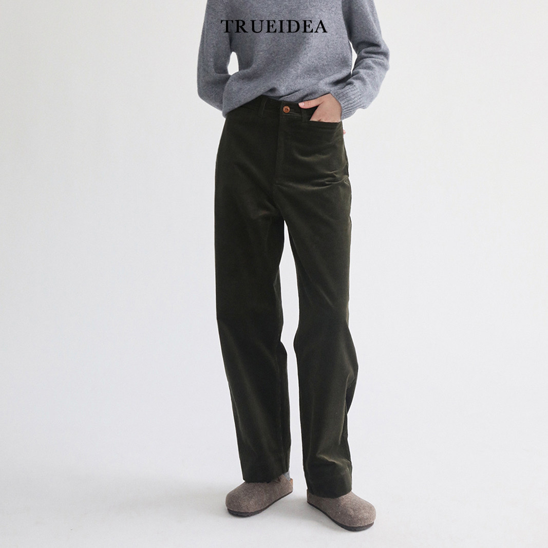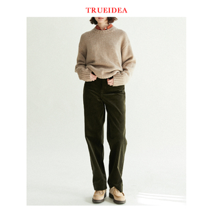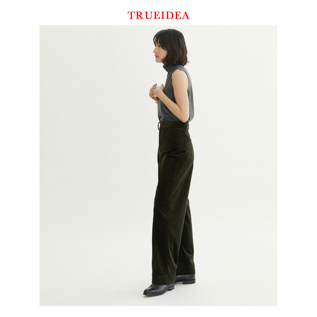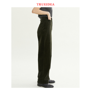 长裤 trueidea24春 墨绿色重酵水洗灯芯绒高腰直筒裤 加色 爆款