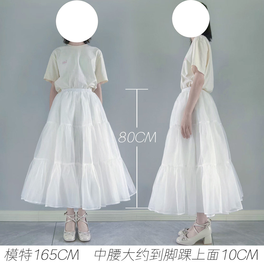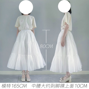 白色蕾丝蓬蓬蛋糕短裙女夏季 胖妹妹mm高腰遮胯显瘦a字半身裙 新款