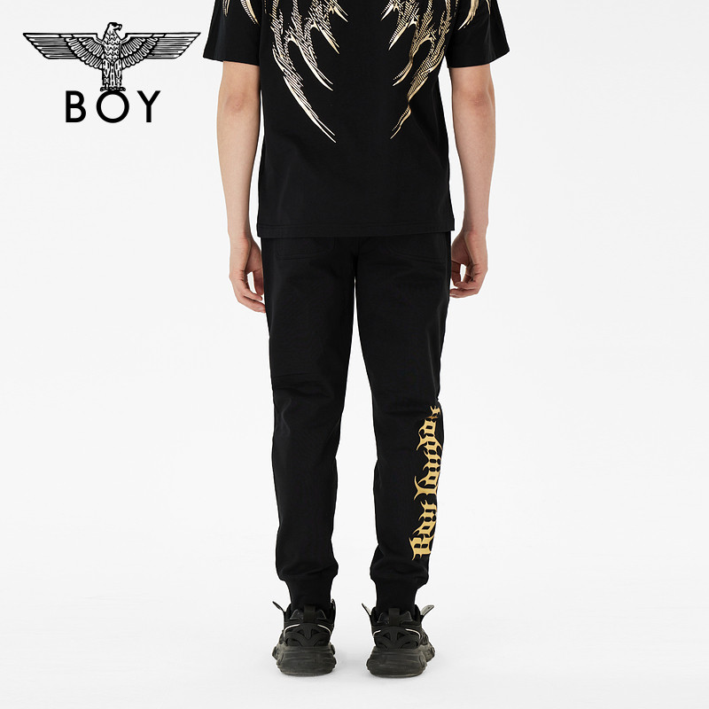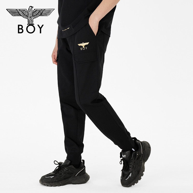 运动休闲长裤 BOYLONDON春季 老鹰针织黑色时尚 男女同款 N15008 卫裤