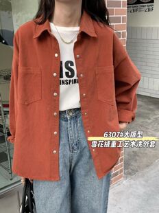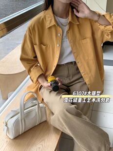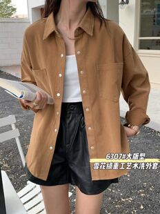 专柜撤回bf宽松加厚洗水棉衬衫 洋气学院风衬衣外套上衣 女复古夏装