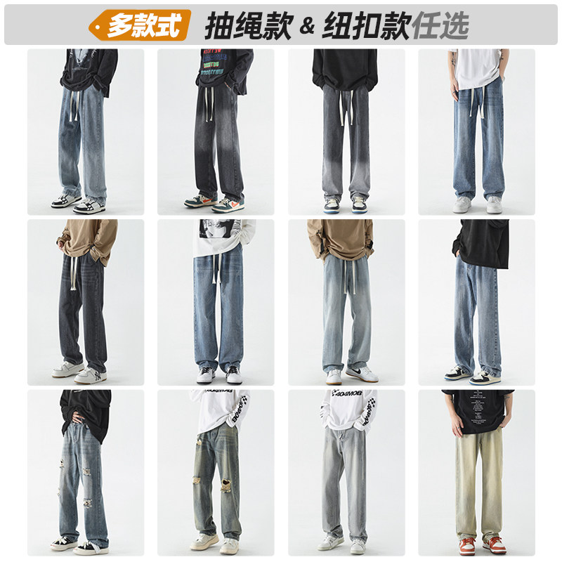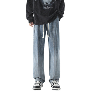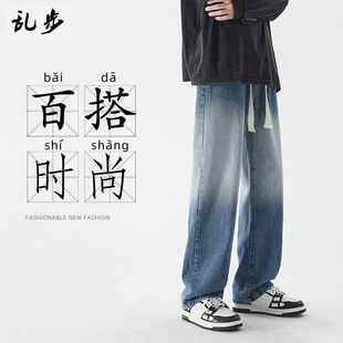 男秋季 炸街痞帅裤 韩版 个性 子 潮牌直筒宽松阔腿裤 乱步渐变色牛仔裤