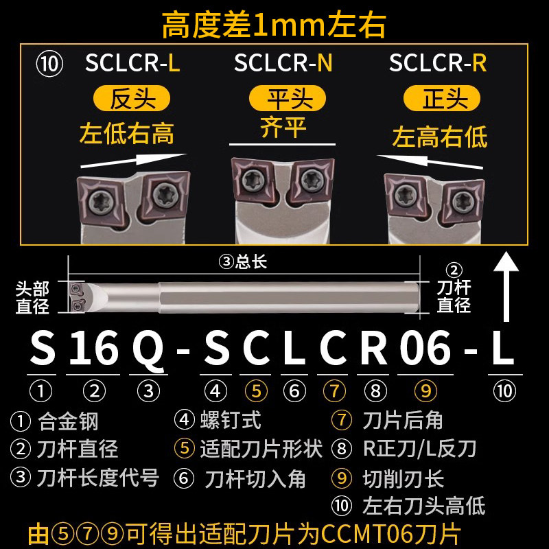 L外圆牛头刀 数控刀杆双头车床镗孔刀杆内孔车刀杆S16Q SCLCR06