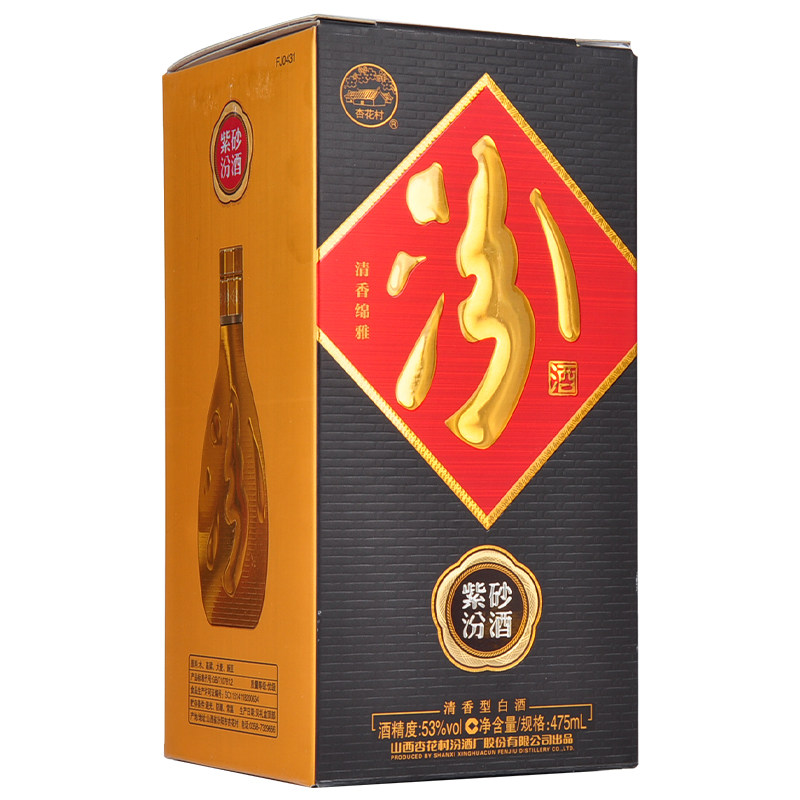 汾酒53度紫砂汾酒475ml单瓶礼盒装 山西杏花村清香型粮食白酒
