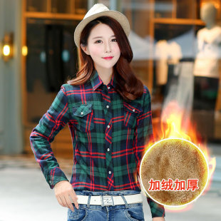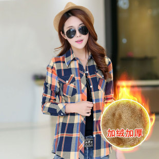 韩范磨毛厚实宽松显瘦上衣外套 加绒加厚格子保暖衬衫 特价 清仓