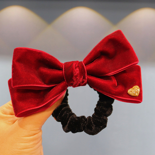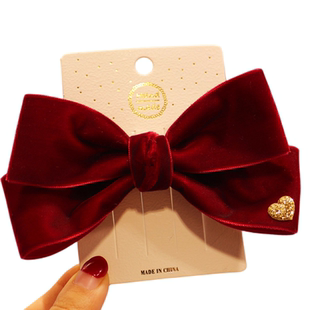 红色丝绒新年头饰儿童蝴蝶结发圈头绳女孩过年卡发夹女童发饰秋冬