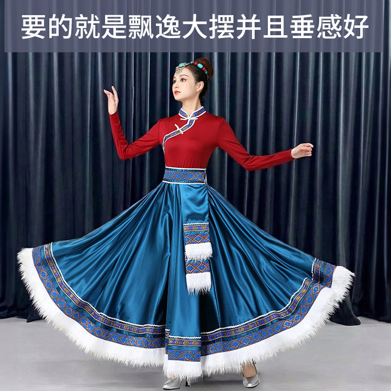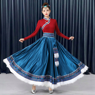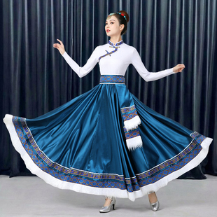 藏族舞蹈服装 半身裙广场舞艺考练习舞蹈裙民族风大摆裙表演服饰女