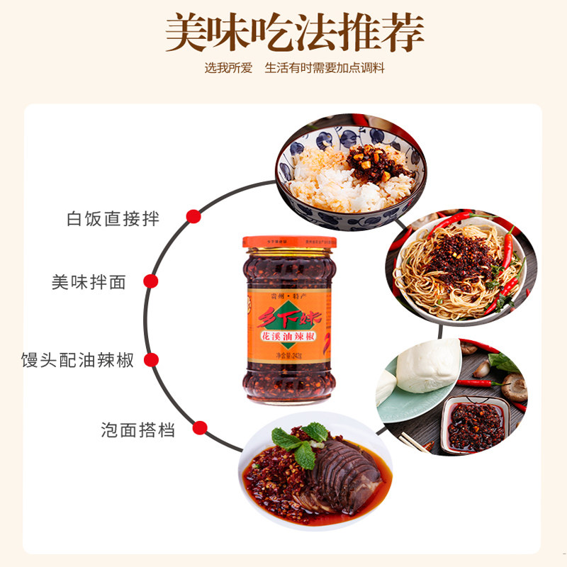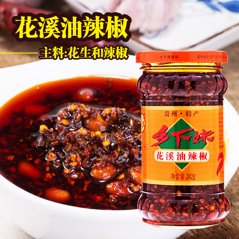 贵州特产乡下妹花溪油辣椒香辣味油泼辣子凉拌下饭酱242g瓶 包邮