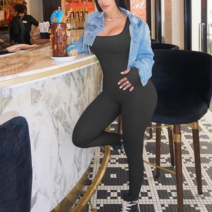 hip neck lift sexy Threaded jumpsui螺纹提臀性感链条裤 square