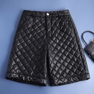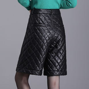 新款 冬季 加棉加厚PU皮短裤 外穿显瘦高腰阔腿靴裤 皮裤 马裤 女五分裤