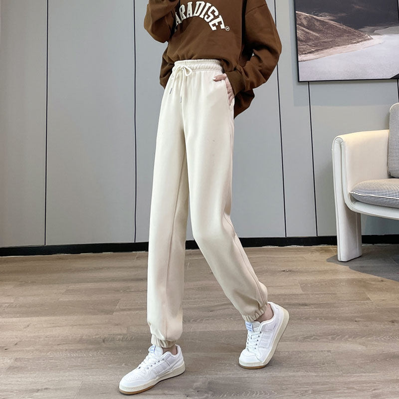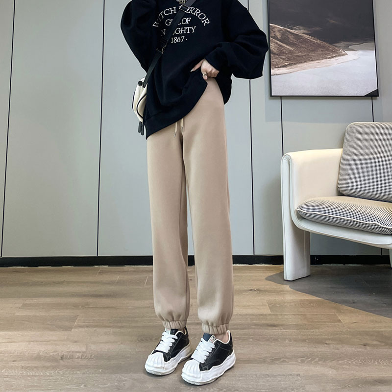 冬天加绒加厚卡其色加长运动哈伦裤 女束脚高个子175秋冬灯笼卫裤