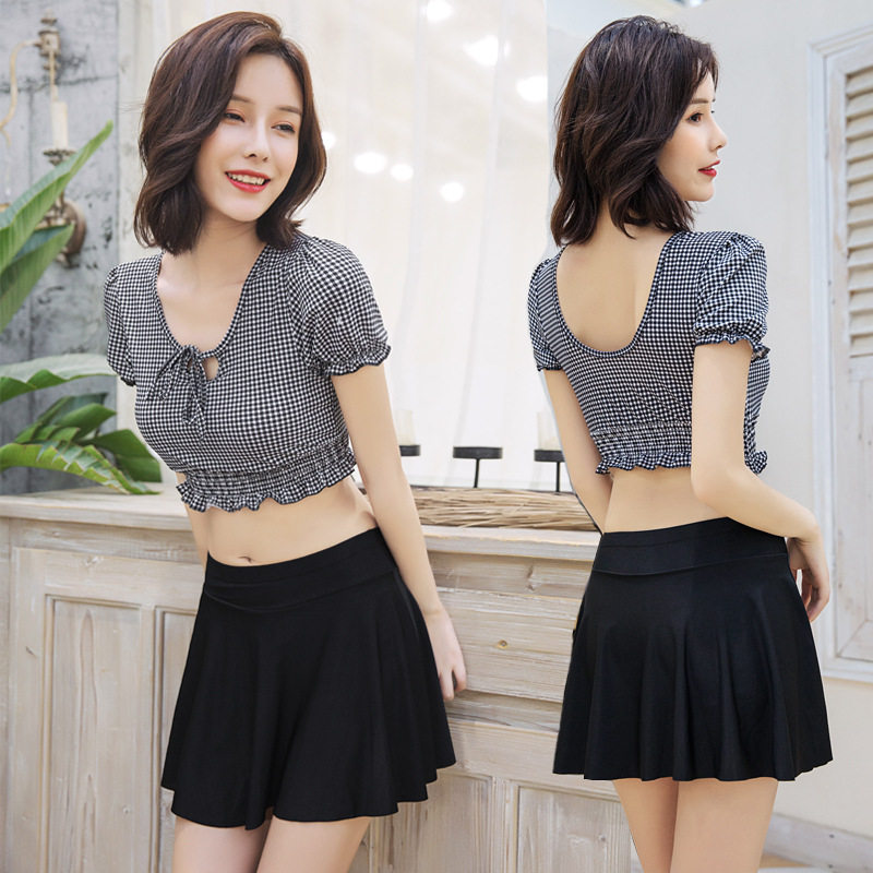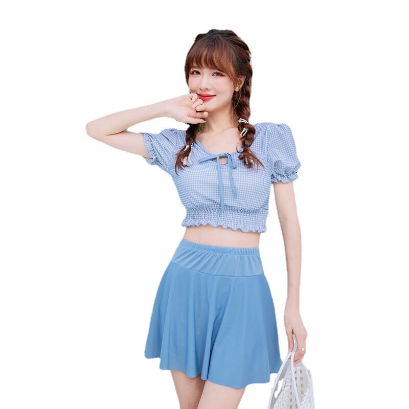 平角学生保守温泉泳装 泳衣女韩国ins风格 子少女显瘦遮肉分体裙式