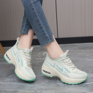 女2025爆款 小个子厚底小白鞋 小码 34网面老爹鞋 内增高7cm运动鞋