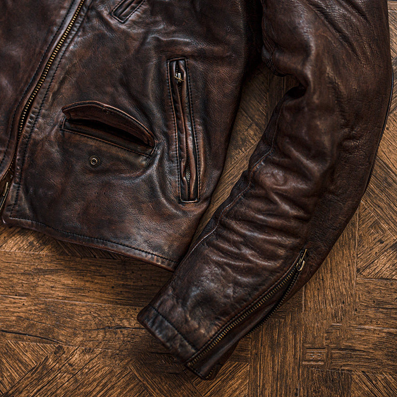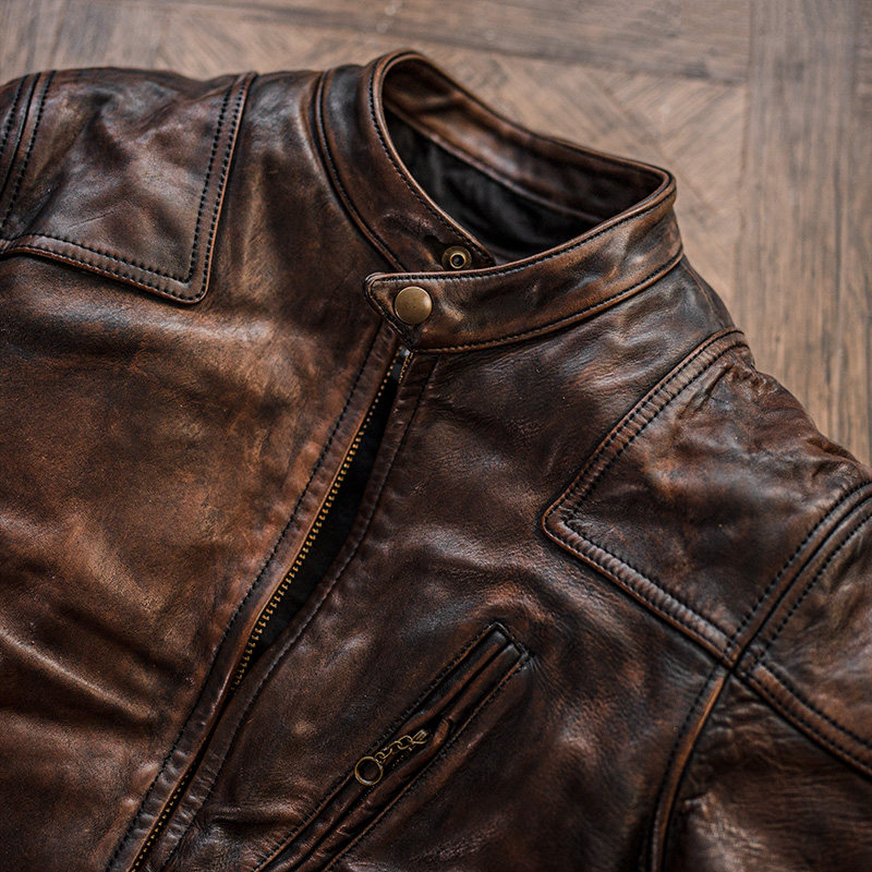 欧美街头皮衣 皮衣真皮立领夹克合身长袖 Third 真皮机车夹克机车款