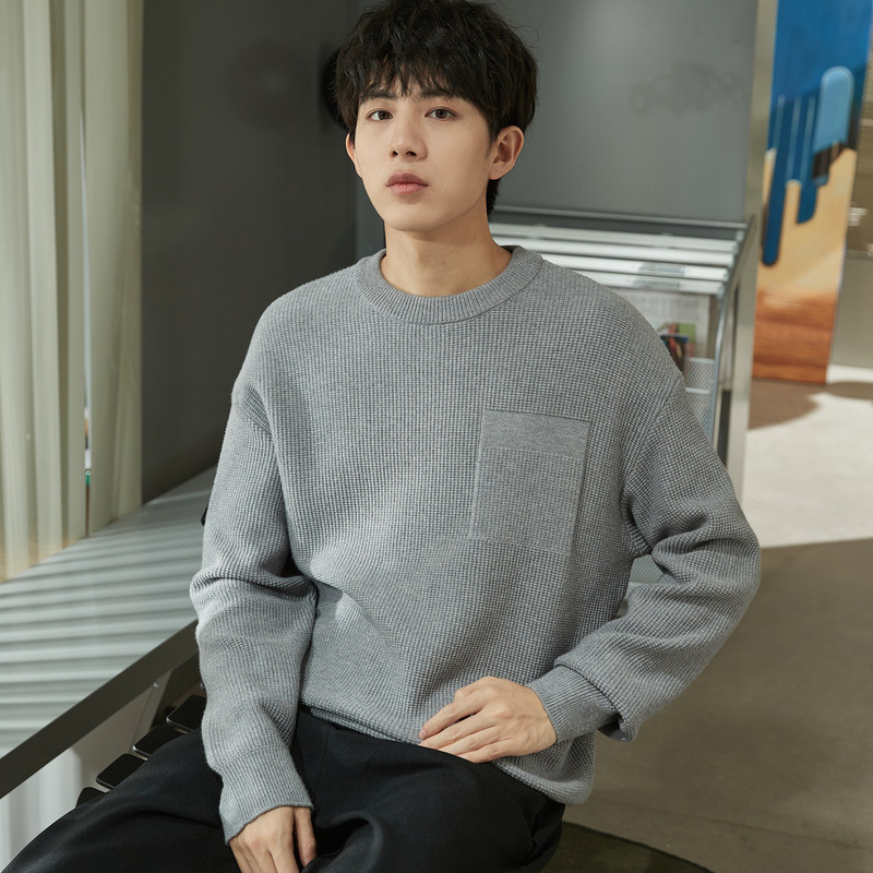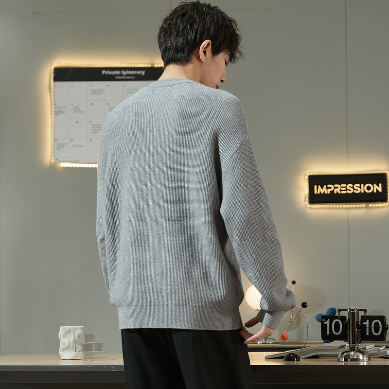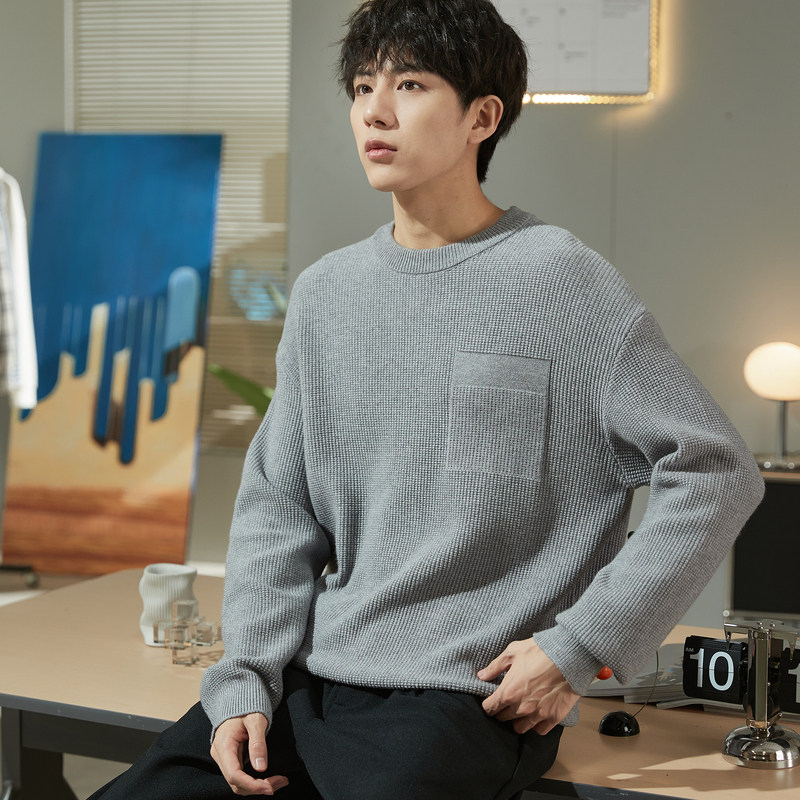 男装 唐狮2025春季 毛衣男生宽松百搭设计感男毛线衫 圆领男士 潮 新款