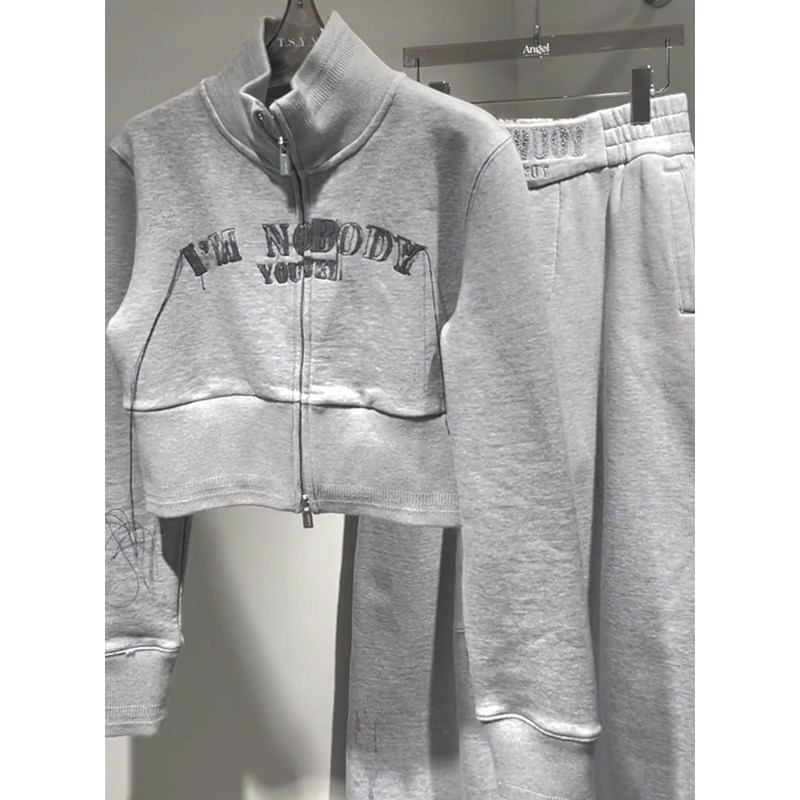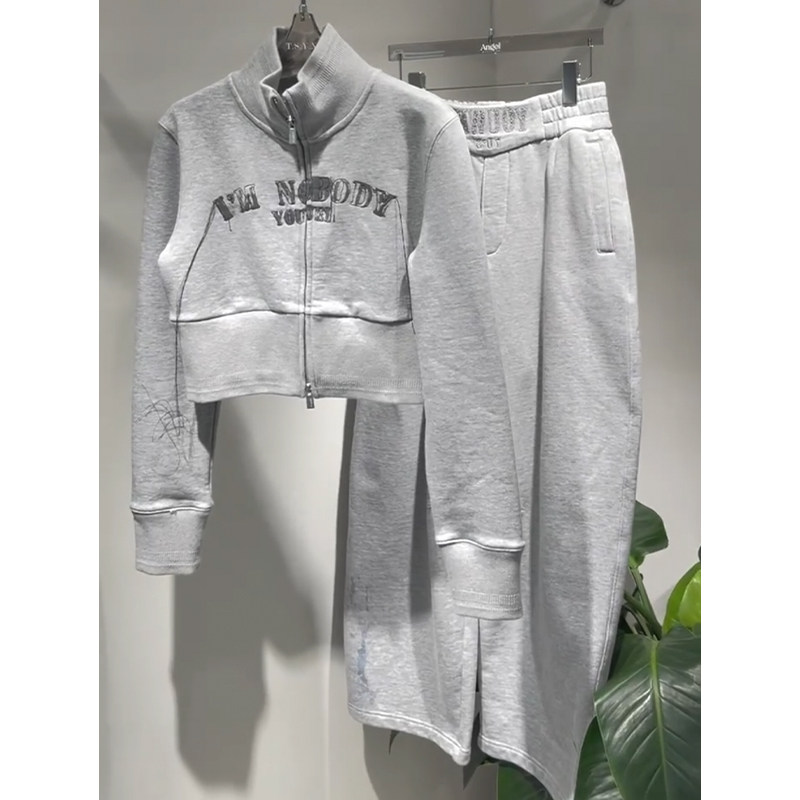 sea 子两件套休闲运动套装 裤 秋冬穿搭 白灰薄绒套头卫衣 see