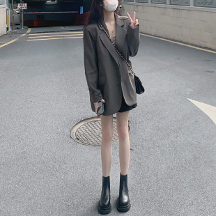 chic宽松显瘦气质休闲西服上衣 新款 高级设计感咖色西装 外套女春装
