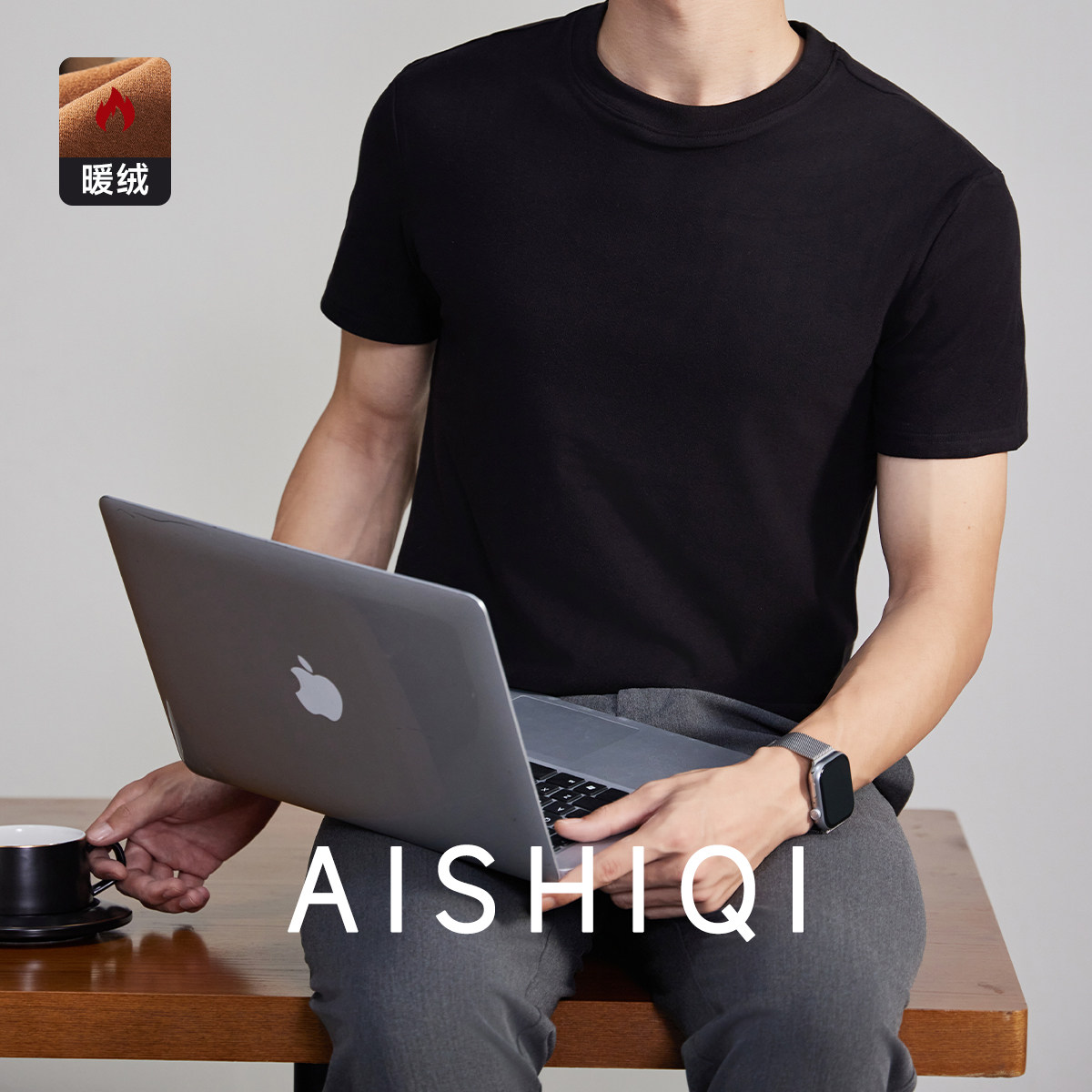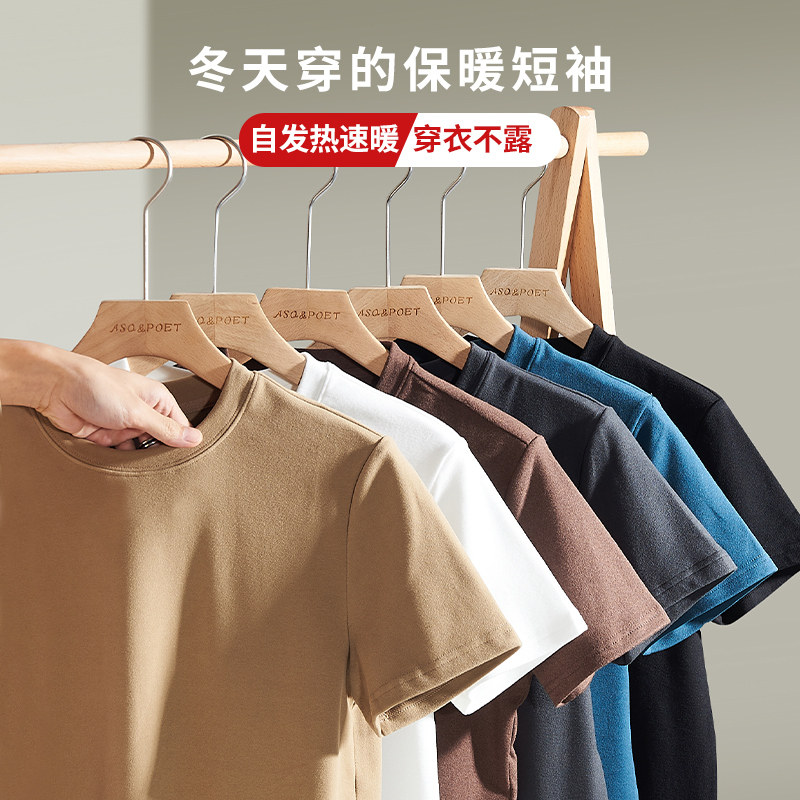 加绒保暖短袖 短袖 双面绒内搭衣服男士 德绒磨毛t恤打底衫 男秋冬款