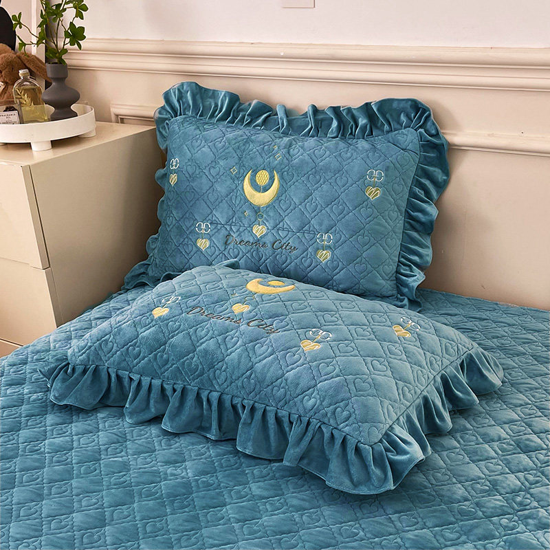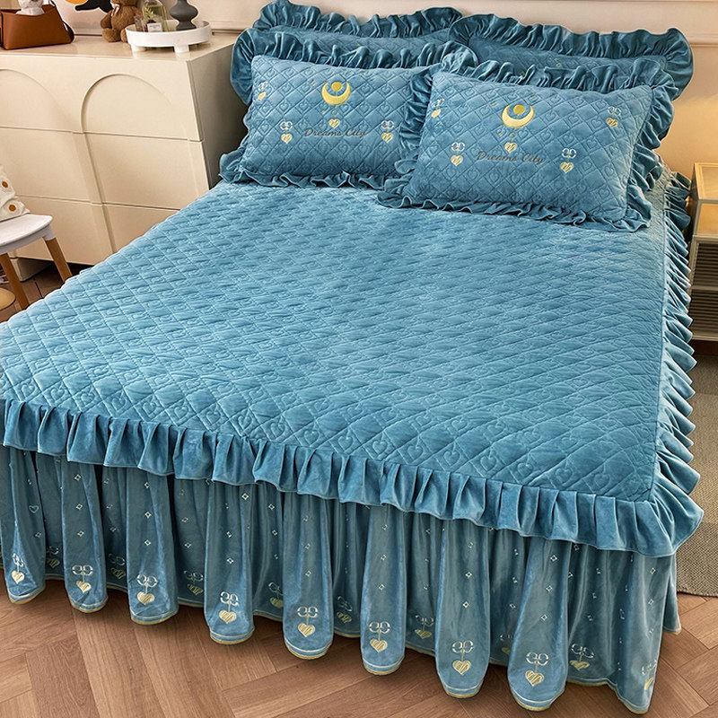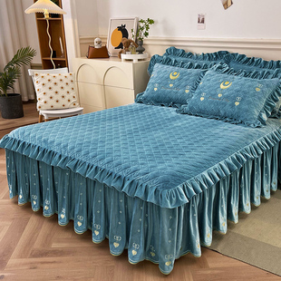 欧式 床罩单件夹棉加厚1.8x2.0床围保护套 高档刺绣A类婴儿绒床裙式