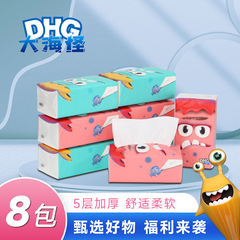 实惠装 5层90抽纸巾 家用面巾纸 大码 母婴级 8包装 大海怪抽纸