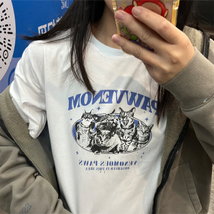 圆领情侣 马克先生自制原创休闲通勤纯棉夏款 复古卡通派对T恤