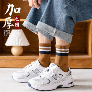 羊毛袜子女冬季 超厚中筒袜加绒加厚保暖棉袜睡眠条纹羊绒月子长袜