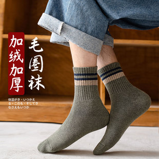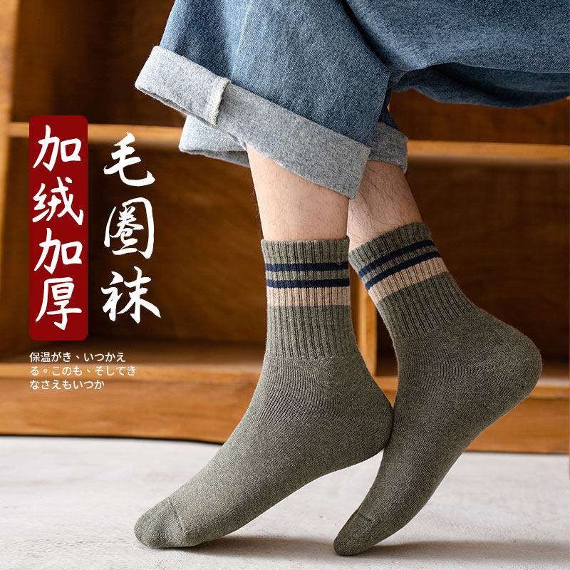 佐印袜子男士 中筒白色运动袜 冬纯棉纱线加厚长袜防臭抗菌吸汗男款