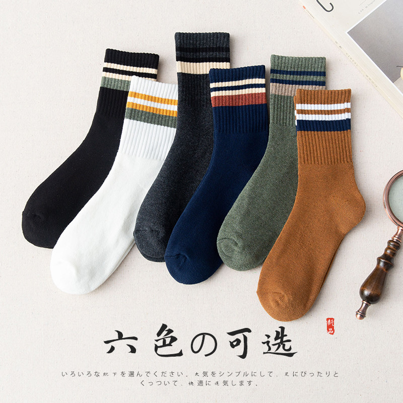 回力纯色新疆棉袜子男款 春秋吸汗防臭中筒袜秋冬长筒袜100%正品