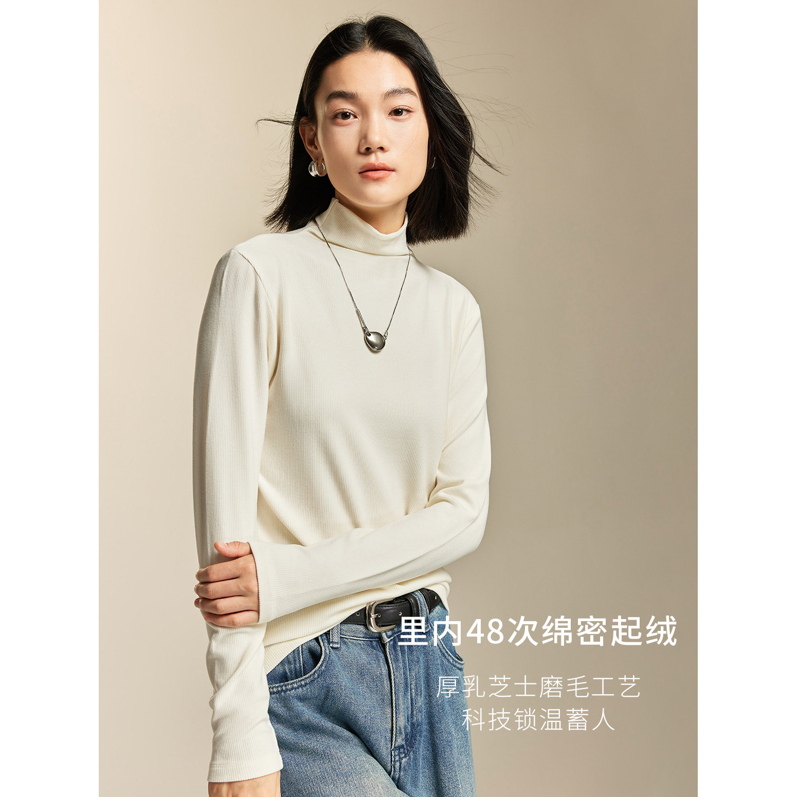 TINGE贴己Row风后缝线高领厚乳芝士打底衫 女冬德绒保暖内衣肌底衣
