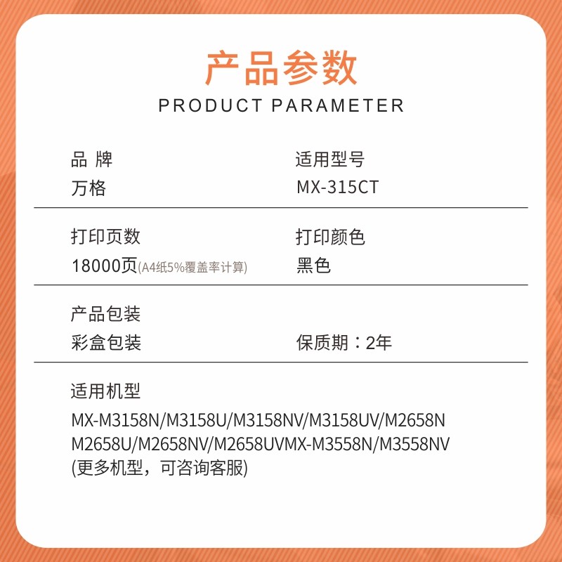 夏普MX m3158m 315CT粉盒M2658U M2658N m3558nv碳粉 M3158U 适用