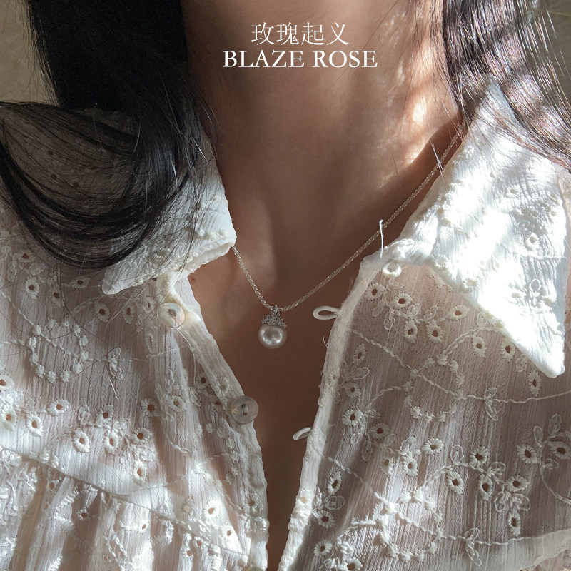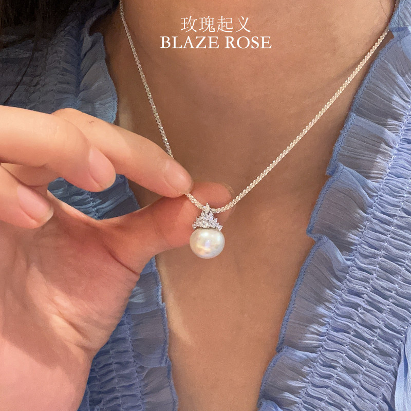 正品 吊坠6A爱迪生正圆极强光高档礼物纯银项链 天然淡水珍珠皇冠款