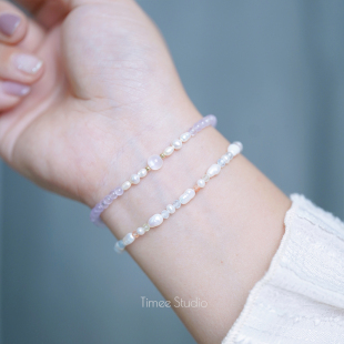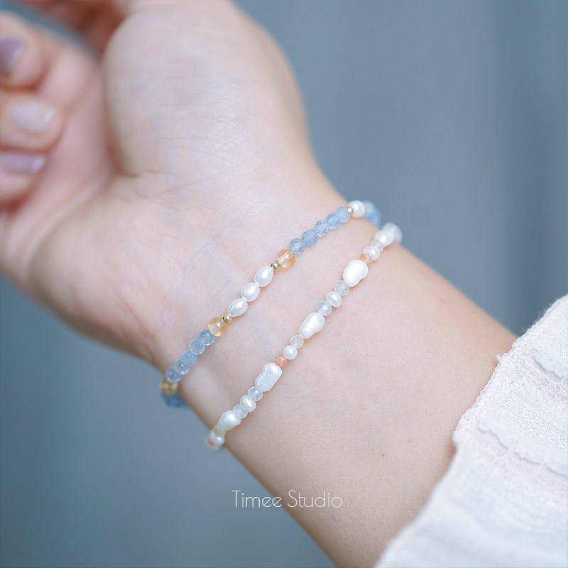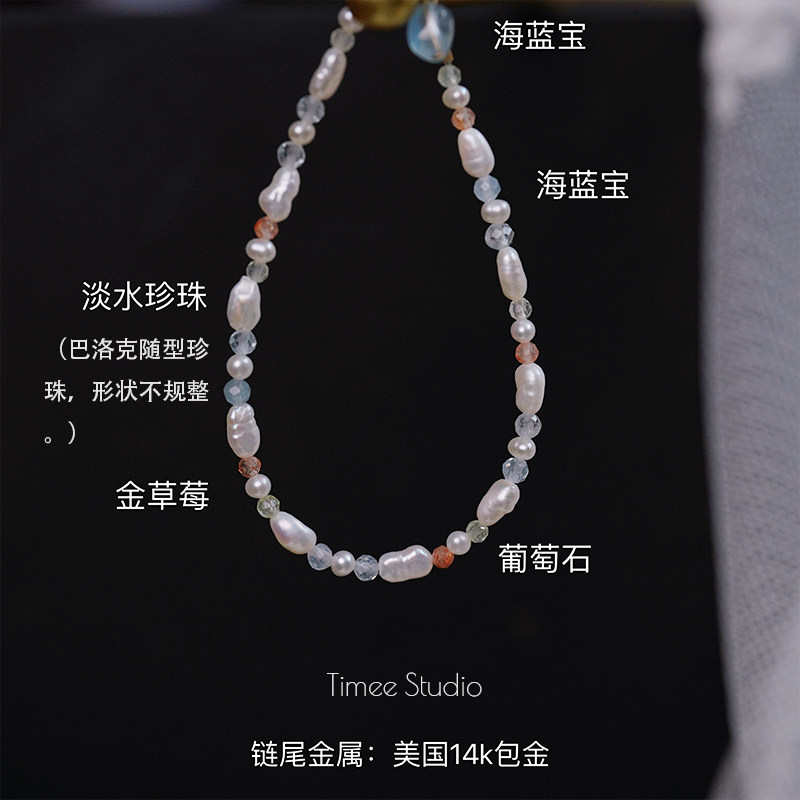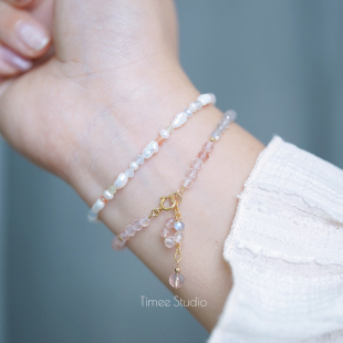 Timee恬觅 天然淡水珍珠海蓝宝葡萄石金草莓手链手串礼物 山茶花