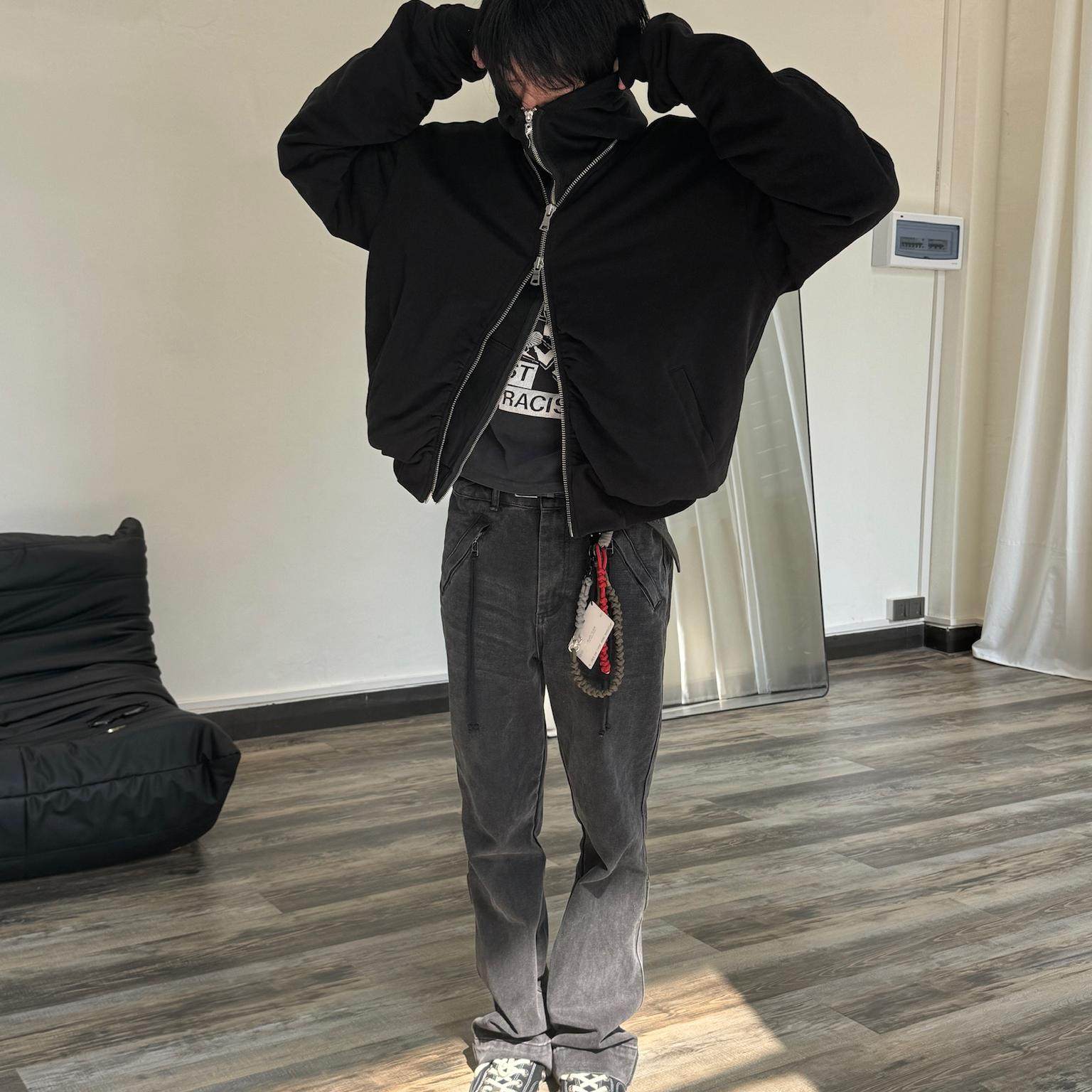 REDRINSE 水洗褶皱拉链纯棉bomber夹克外套ma1秋冬cleanfit短宽