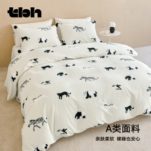 tbh野兽派家居床品三 四件套熊猫嘭嘭保暖加厚法兰绒床笠套件冬