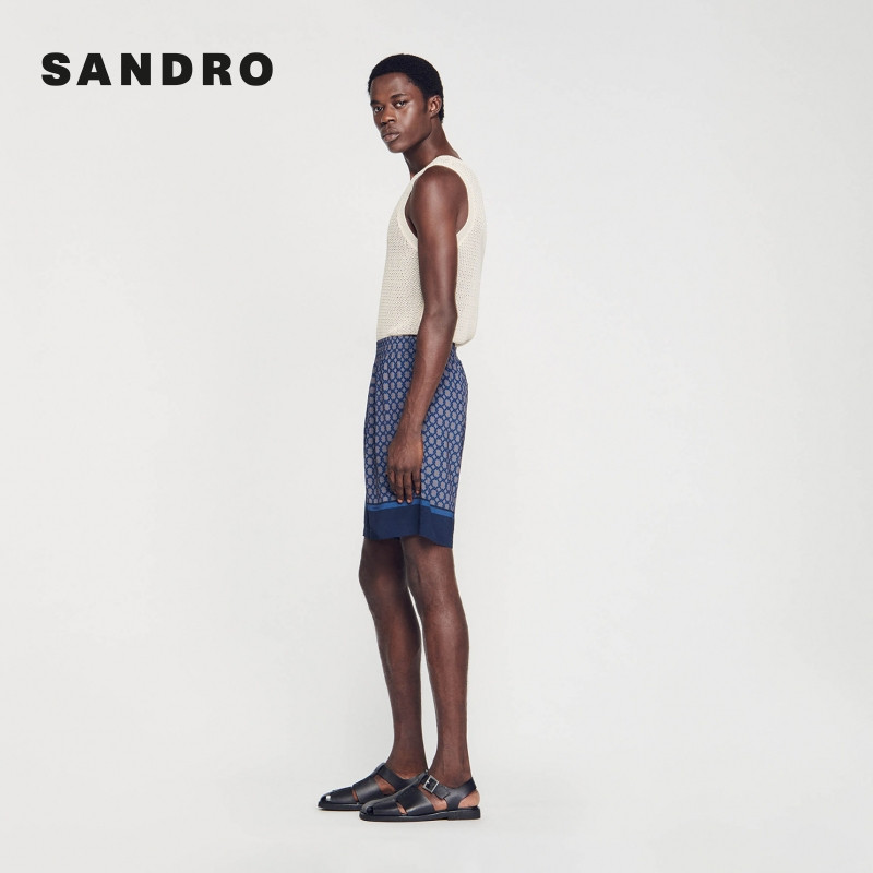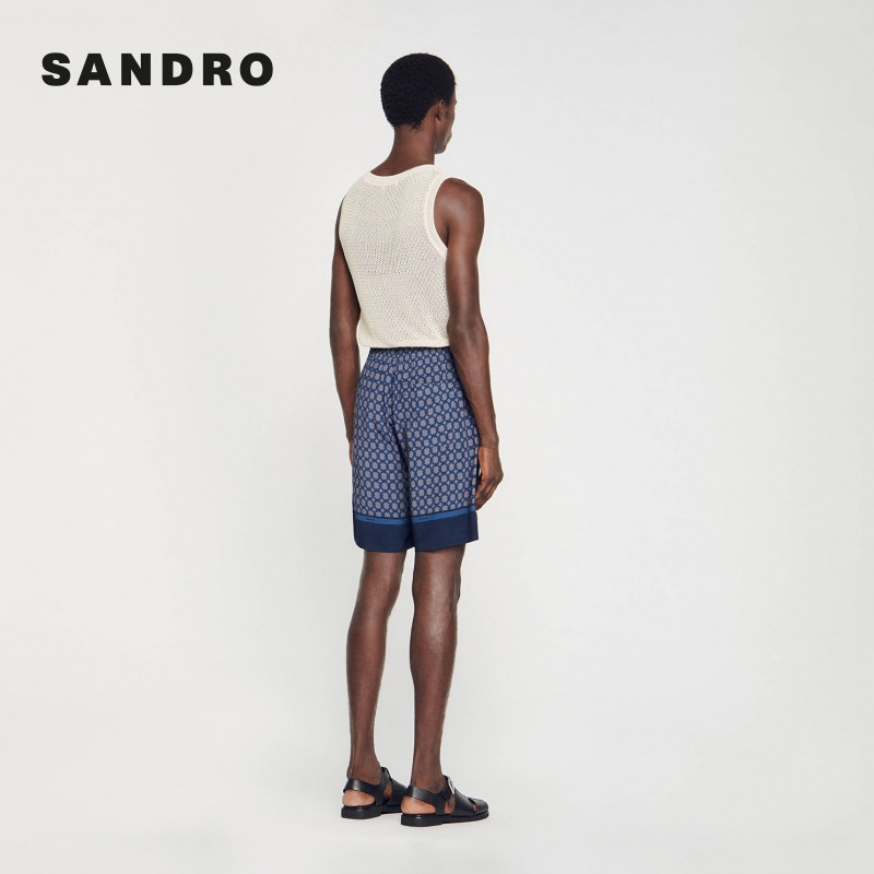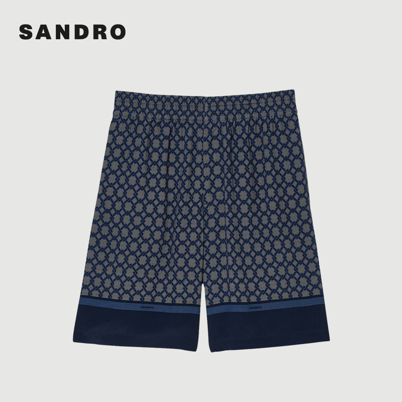 静奢风直筒印花图案撞色格纹抽绳休闲短裤 SANDRO Outlets春夏男装