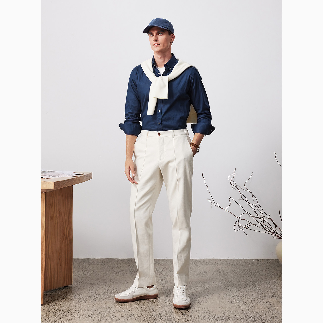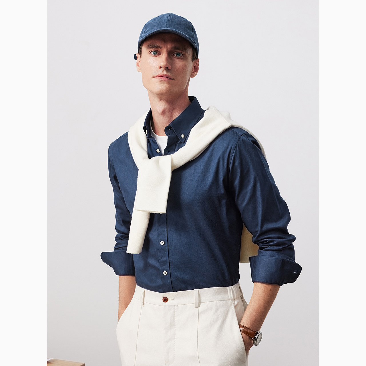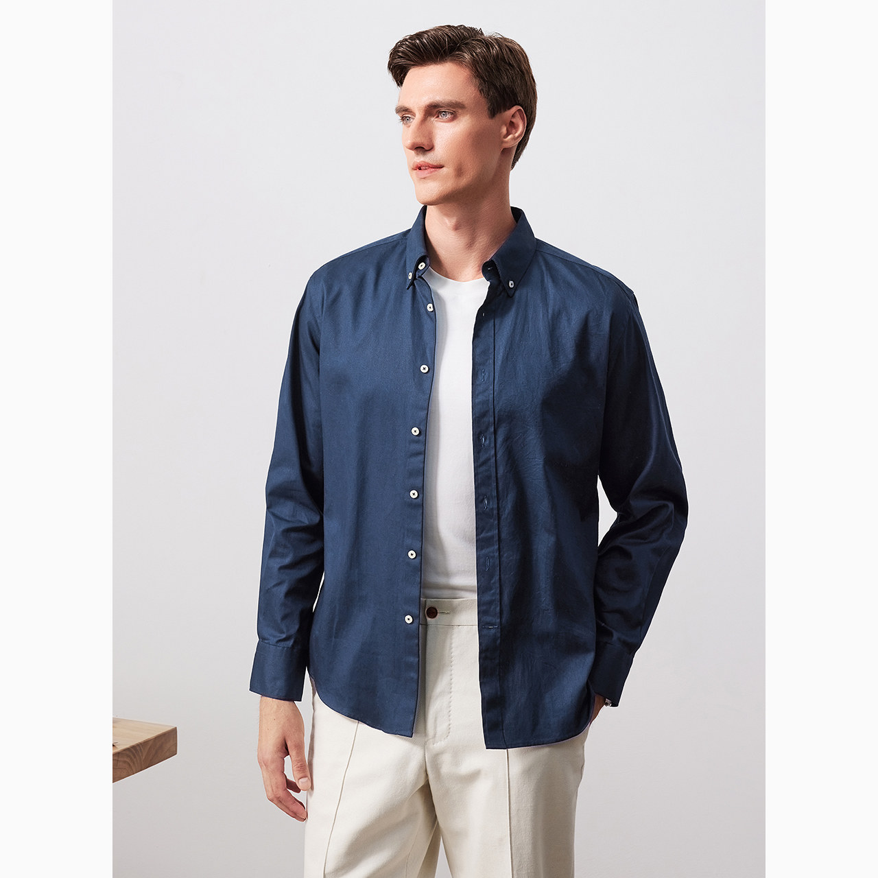 衬衣宽松百搭外套 商务休闲通勤上班长袖 柏品纯棉牛津纺衬衫 男士