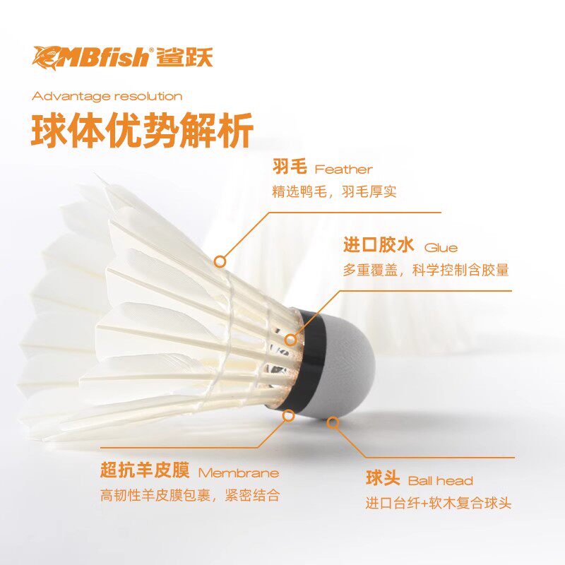 耐打比赛训练专业不易打烂硬球头3只装 鲨跃Mbfish羽毛球正品 6只装