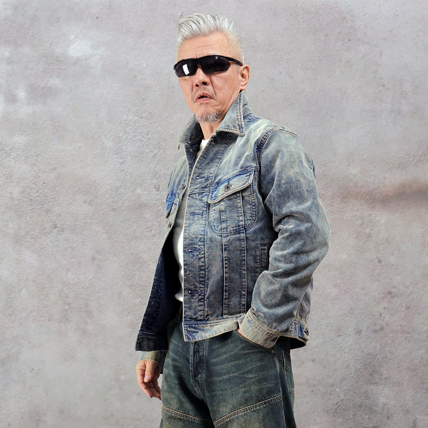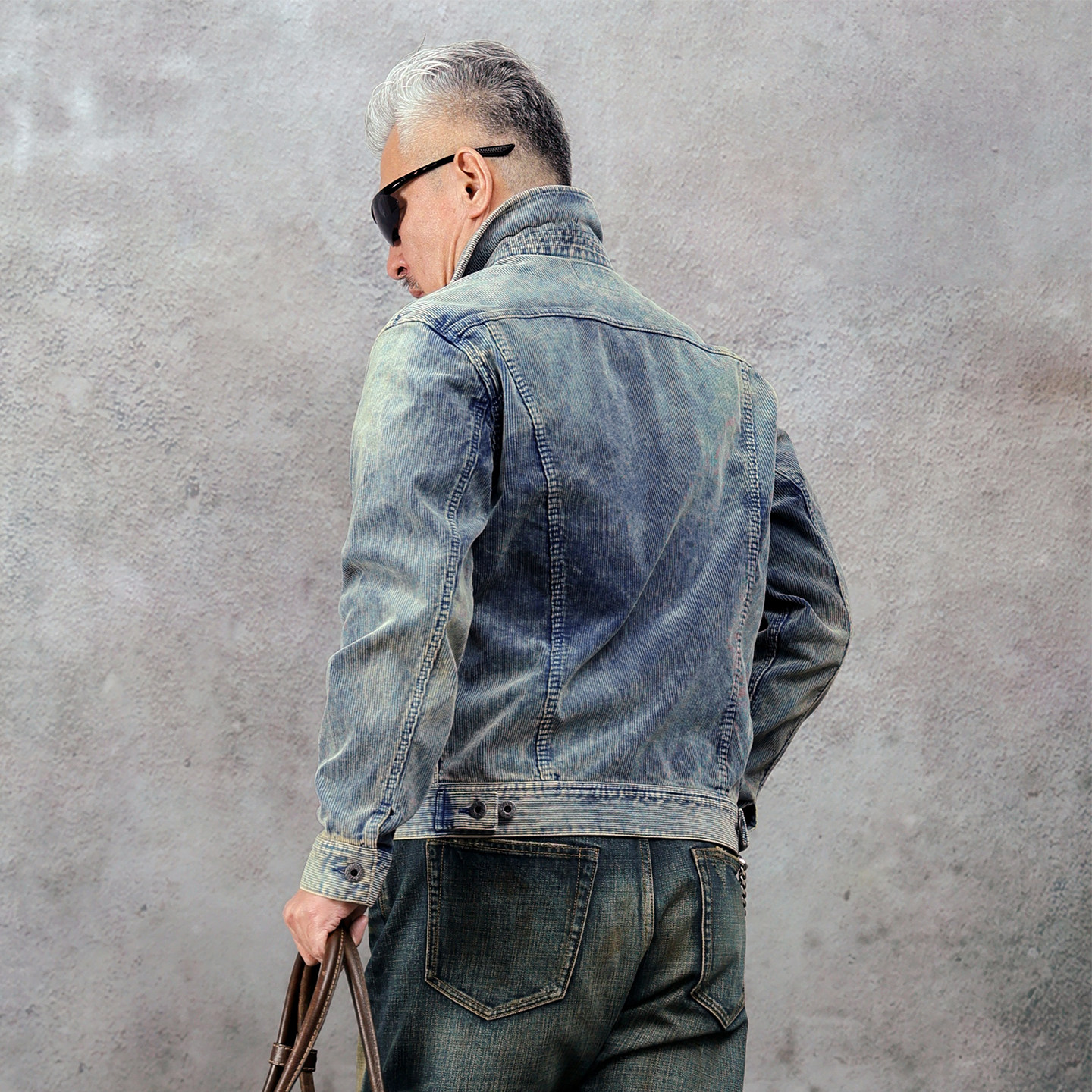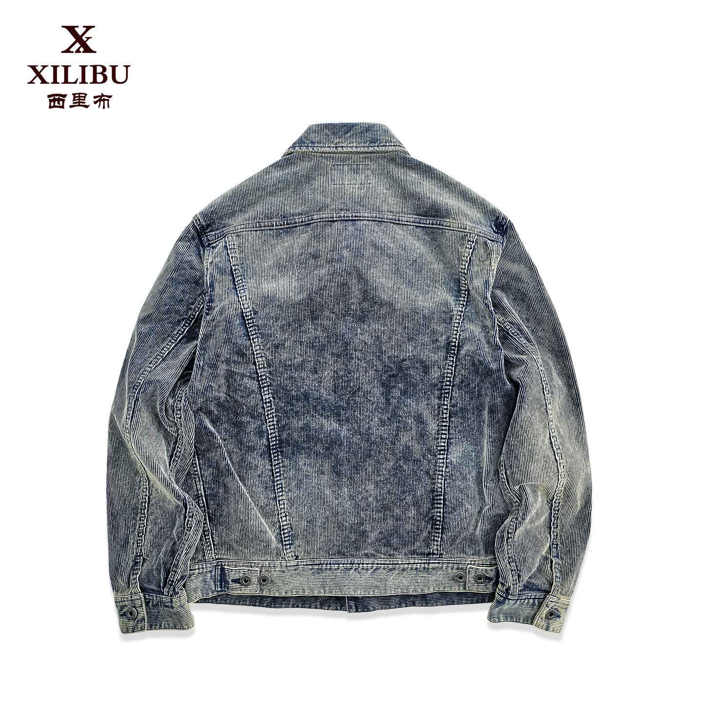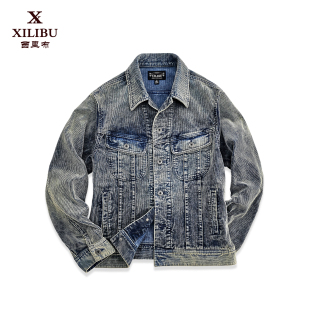 男款 西里布灯芯绒蓝染101 夹克衫 工装 拔染做旧条绒外套非rrl J短款