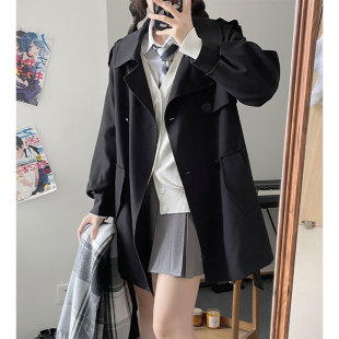 奶咖色外套女小个子好看大衣 新款 墨秋JK制服风信子中长款 风衣冬季