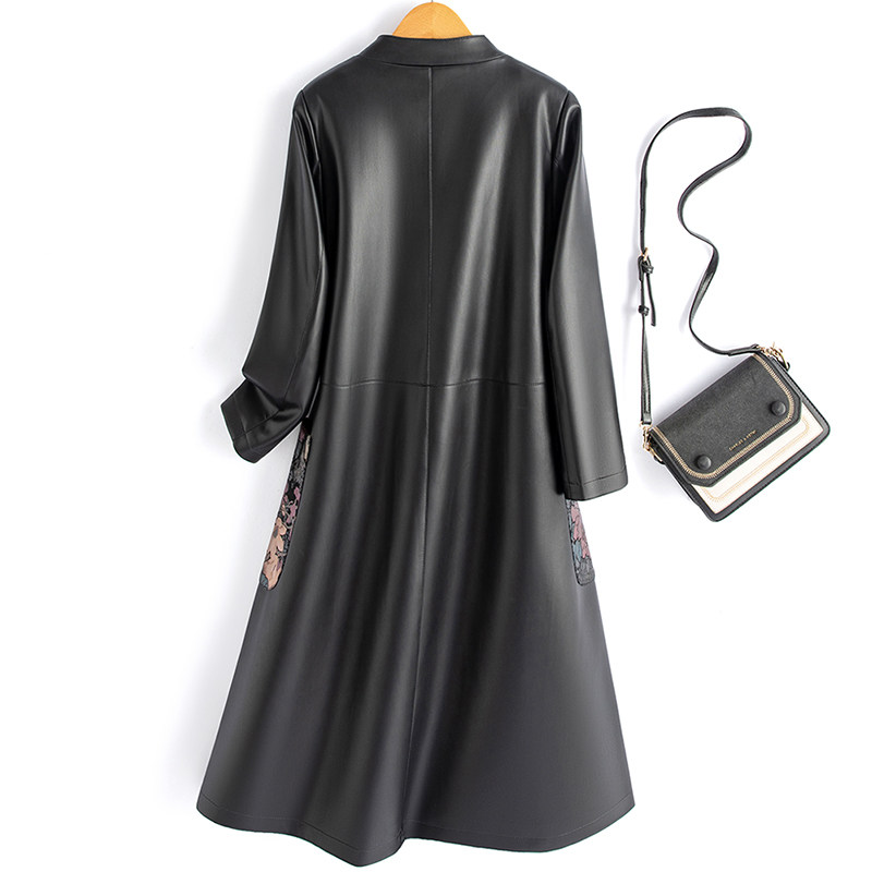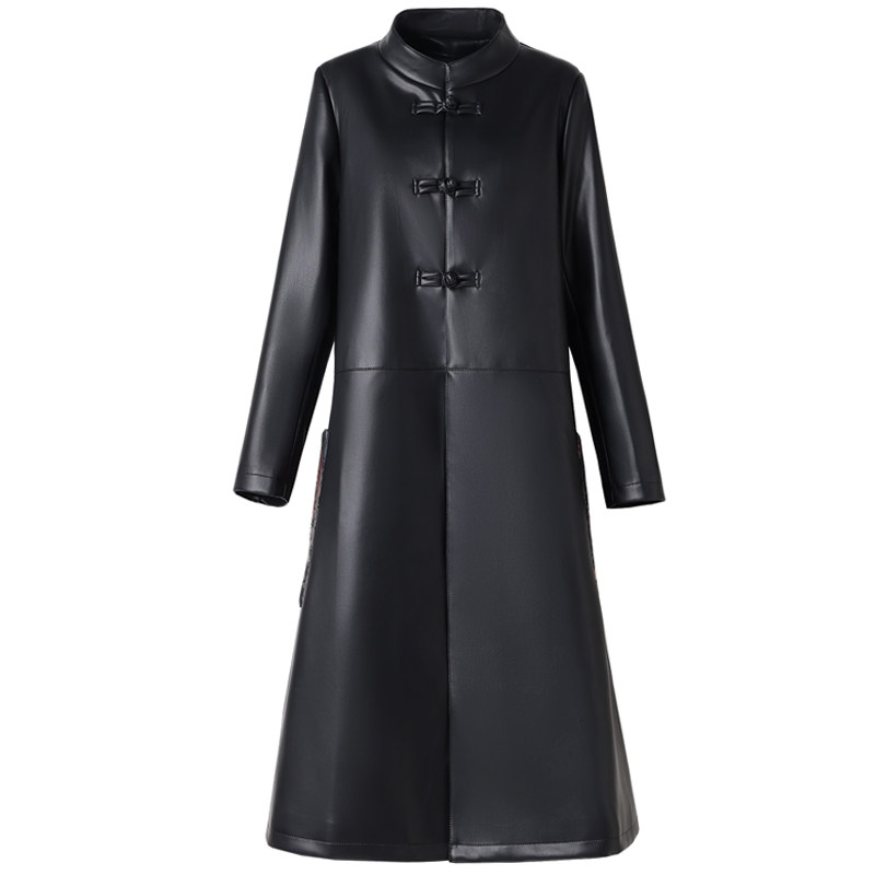 2025秋冬新款 复古盘扣皮风衣外套显瘦立领皮大衣 真皮皮衣女中长款