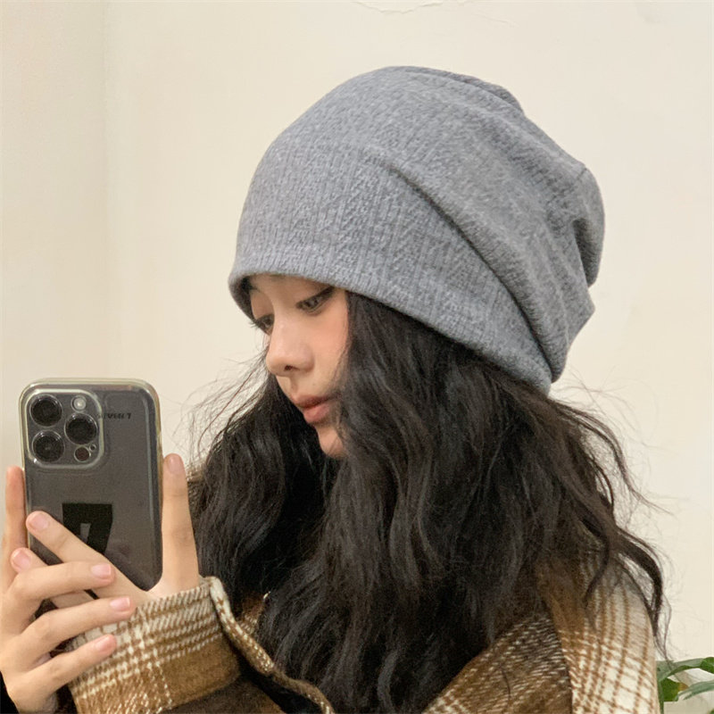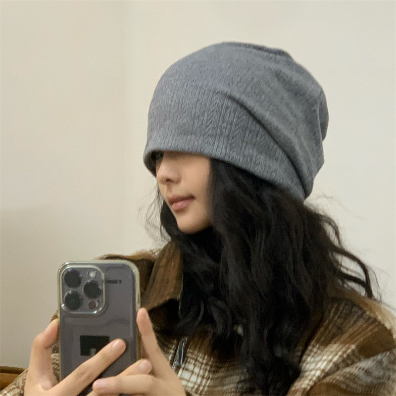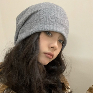大头围显脸小毛线帽小熊耳朵帽子女毛绒护耳针织帽加深可爱包头帽