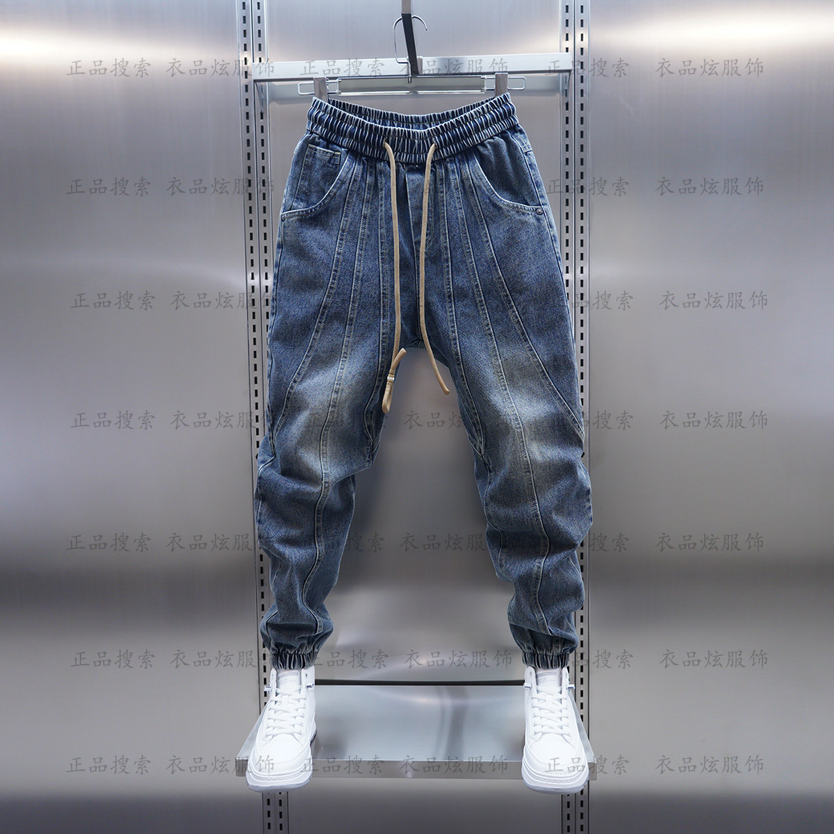 宽松丹宁水洗做旧简约休闲阔腿裤 直筒原色牛仔裤 子 Studio美式 HMN