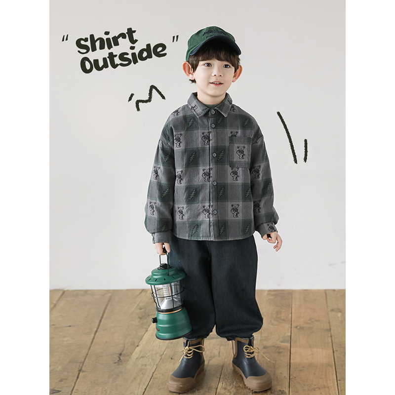 秋冬款 翻领简约衬衫 轻盈保暖儿童百搭上衣潮 长袖 幼悠男童2025新款