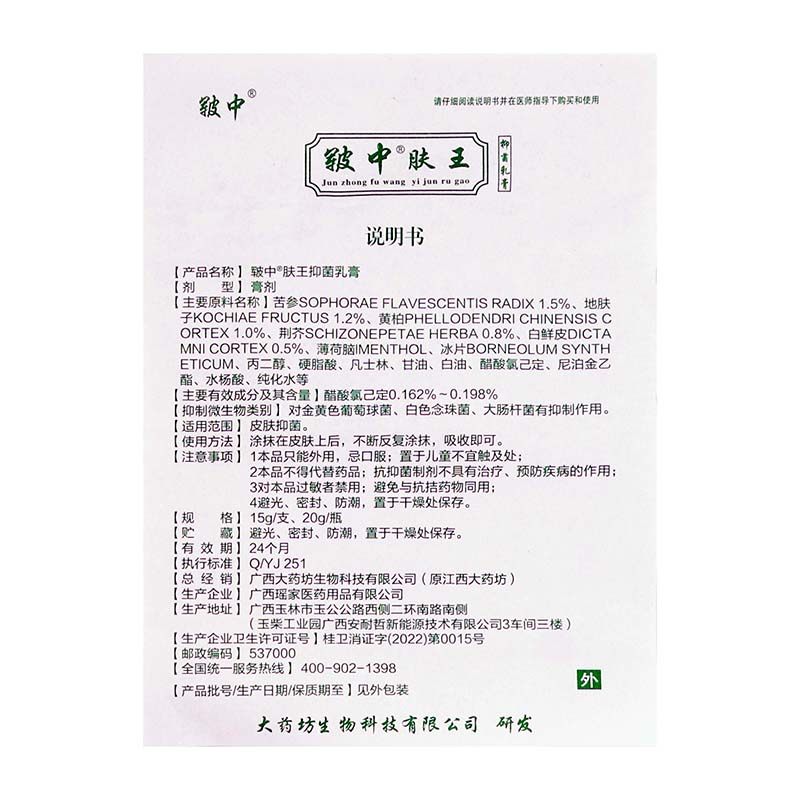 皲中肤王15g抑菌乳膏植物草本精华成人外用清洁抑菌软膏