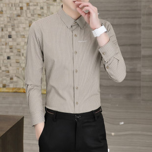 春夏季 百搭长袖 商务休闲衬衫 条纹寸衫 装 修身 男士 潮流打底衬衣 韩版