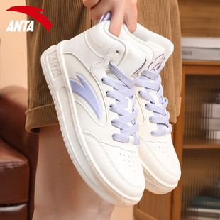 官方旗舰皮面防水增高休闲运动鞋 女冬季 子 轻松2高帮板鞋 安踏女鞋