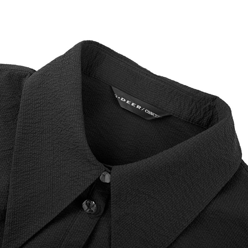翻领碎褶收腰衬衫 时尚 连衣裙S243Z1220 女装 sdeer圣迪奥秋装
